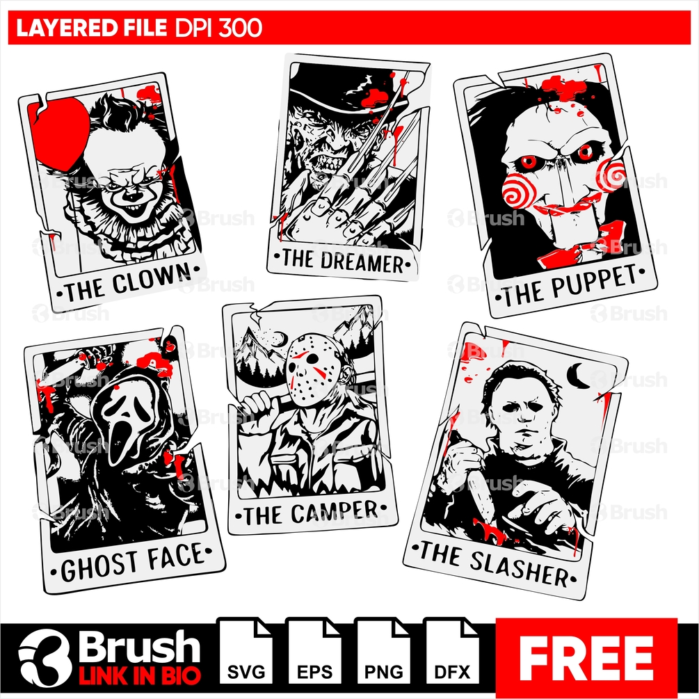 Horror Tarot Card Collection, horror movies svg, Halloween friends SVG Bundle for Cricut and Silhouette, Instant Download.